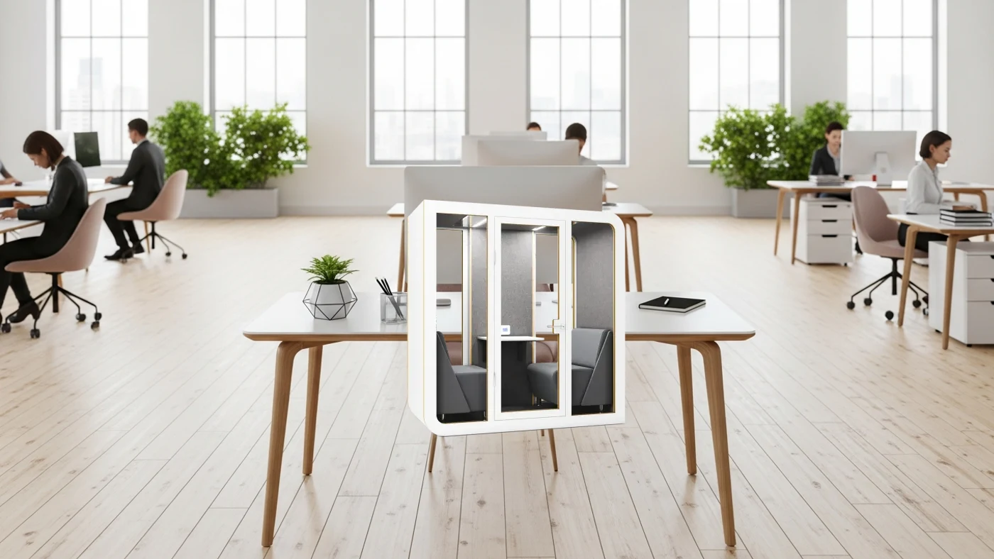 Las primeras generaciones de cabinas acústicas eran cajas de plástico con iluminación fluorescente. Funcionales, pero agresivas visualmente. Rompían cualquier diseño de oficina.